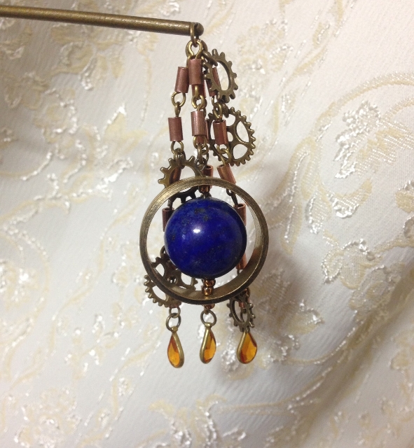 最終的にはじゃらじゃらとしていますが、途中経過のシンプルな感じもかわいかったので一緒にお送りします。真ん中の石はラピスラズリです。